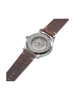 Die Bruno Söhnle Stuttgart Episode V 17-12123-861 ist eine Uhr, die für höchste Präzision und Qualität steht. Die Marke Bruno Söhnle hat eine lange Geschichte und ist seit mehr als 70 Jahren eine bekannte Marke in der Uhrenbranche. Die Uhr ist aus hochwertigem Edelstahl gefertigt und hat einen Durchmesser von 44mm und eine Höhe von 12mm. Sie ist 100m wasserdicht und wiegt 90g. Der Gehäuseboden ist aus Glas und das Uhrglas ist innen entspiegelt. Das Uhrwerk ist ein Automatikwerk, das auf Basiskaliber Sellita SW200 läuft und eine Gangreserve von bis zu 38h hat. Das Armband ist aus Kalbsleder, Struktur, Steppnaht und hat eine braune Farbe. Die Schließe ist eine Dornschliesse und der Bandanstoß am Gehäuse ist 22mm. Die Uhr hat auch einige spezielle Funktionen, wie z.B. Limitiert, Leuchtzeiger und andere.