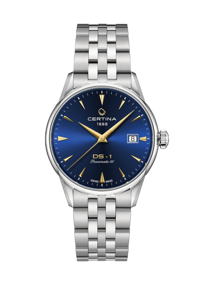 Zu den weiteren Funktionen der Certina DS-1 gehören das NIVACHRON-Uhrwerk, das Großdatum, die Datumsanzeige und die Zentralsekunde. Mit dem POWERMATIC 80.611-Kaliber ist diese Uhr nicht nur ein stilvolles Accessoire, sondern auch eine zuverlässige Zeitmessung für den täglichen Gebrauch.