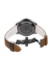 Der Aufzug der Uhr ist ein Quarzwerk mit dem Kaliber ETA F07.412. Das Armband besteht aus 316L Edelstahl, der mit einer PVD-Beschichtung versehen ist. Es hat eine Farbe, die aus braun mit heller Ziernaht und Mattschwarz besteht. Es wird durch eine Faltschliesse geschlossen und hat einen Bandanstoß am Gehäuse von 21,0mm.