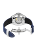 Der Aufzug des Uhrwerks ist ein automatischer Powermatic 80.621, der eine Gangreserve von bis zu 80h hat. Das Zifferblatt ist in Blau gehalten und die Indexe sind als Striche gestaltet. Das Armband besteht aus Leder und Textil, ist blau und hat helle Ziernähte. Es ist mit einer Schmetterlingsfaltschliesse versehen und hat einen Bandanstoß am Gehäuse von 20mm.