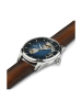 Das Uhrwerk ist ein ETA C07.611 Basiskaliber mit 25 Steine und einem Aufzug von Automatik. Es hat eine Gangreserve von bis zu 80h und eine Schwingung von 28800 Halbschwingungen pro Stunde. Das Zifferblatt ist blau mit Strichen als Index. Das Armband ist aus Leder mit der Referenz H695.425.100 und ist in brauner Farbe. Die Dornschliesse sorgt für einen sicheren Sitz am Handgelenk. Der Bandanstoß am Gehäuse ist 20mm und 18mm am Schließe.