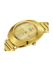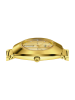 Das Saphirglas mit Antireflektionsbeschichtung sorgt für eine klare Sicht auf das gelbgoldene Zifferblatt, das mit elf Diamanten mit Brillantschliff verziert ist. Die Kombination aus Edelstahl und PVD im Armband in Gelbgold rundet das elegante Erscheinungsbild der Uhr ab.