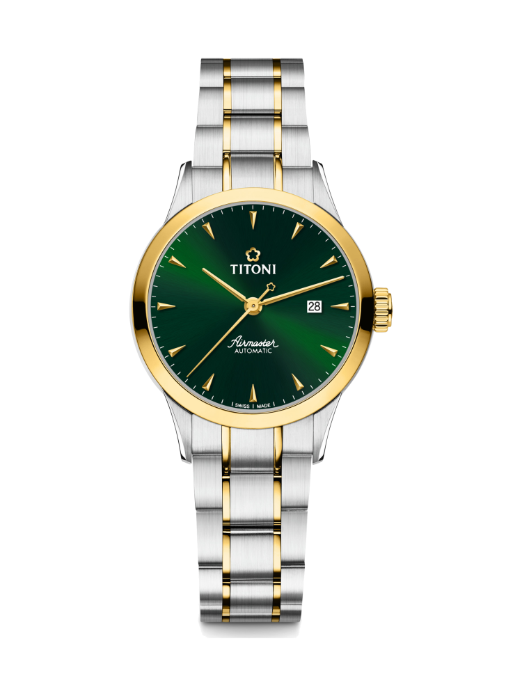 Die Ursprünge der **Airmaster** Uhrenserie reichen zurück bis zur ersten bemannten **Mondlandung** im Jahr 1969. Dank des grösseren Sichtfensters wirkt dieses neu überarbeitete Modell der legendären Uhrenserie deutlich frischer und klarer. Gleichzeitig hat es sich die kraftvolle Ausstrahlung bewahrt, die die **Serie seit Jahrzehnten auszeichnet**. Alle Uhren der **Airmaster-Kollektion** werden ausschliesslich unter Verwendung hochwertiger Teile gefertigt. Ein Grund mehr dafür, dass sich diese **TITONI-Serie** im Lauf von Generationen **Kultstatus** erworben hat.