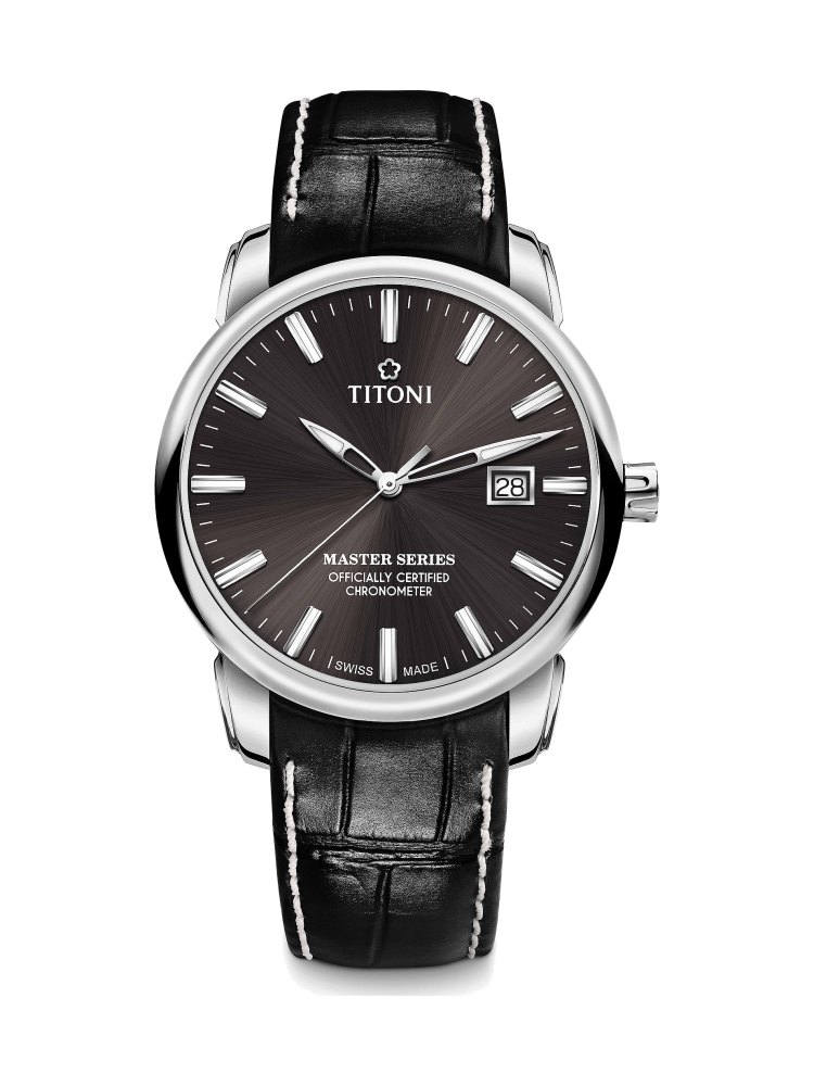 TITONI präsentiert mit dem Chronometer ein Premium-Produkt, das durch sein klassisches und elegantes Design sowohl Kennern als auch Uhrenliebhabern gerecht wird. Diese Uhr vereint Schlichtheit mit Schweizer Uhrmacherkunst und bietet allen, die Wert auf Ästhetik und eine hochwertige Verarbeitung legen, eine einzigartige Symbiose.