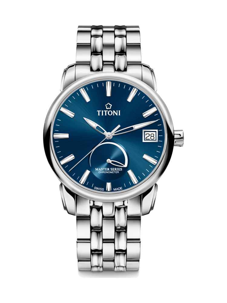 TITONI präsentiert den Chronometer, ein Premiumprodukt, das durch sein klassisches und elegantes Design Uhrenliebhaber und Kenner gleichermaßen begeistert. Dieser Zeitmesser vereint puristische Elemente und hochwertige Schweizer Uhrmacherkunst zu einer Symbiose, die sowohl Ästhetik als auch erstklassige Handwerkskunst in sich vereint.